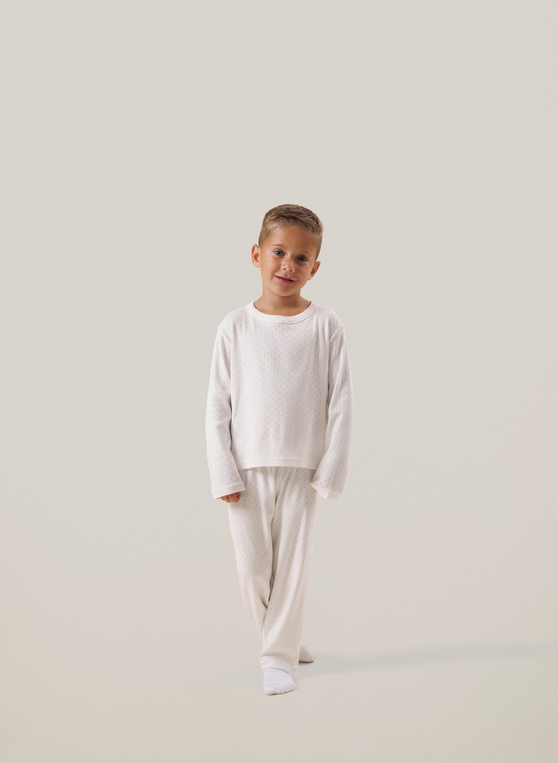 Our Kids Pointelle Pyjama Set is crafted from 100% cotton with a delicate pointelle texture. Cosy, gentle on skin, and perfect for sleepy mornings, sofa snuggles, story time and everything in between.