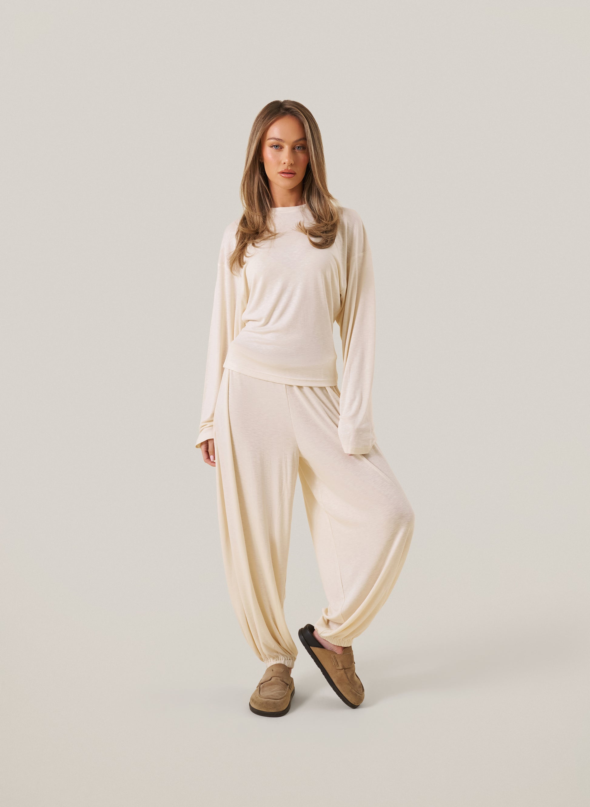 The knitted Slub Set is your everyday essential, reworked for even more comfort and ease. Now designed with long sleeves and cuffed pant hems, it keeps the same relaxed fit you love with a refined, modern feel.