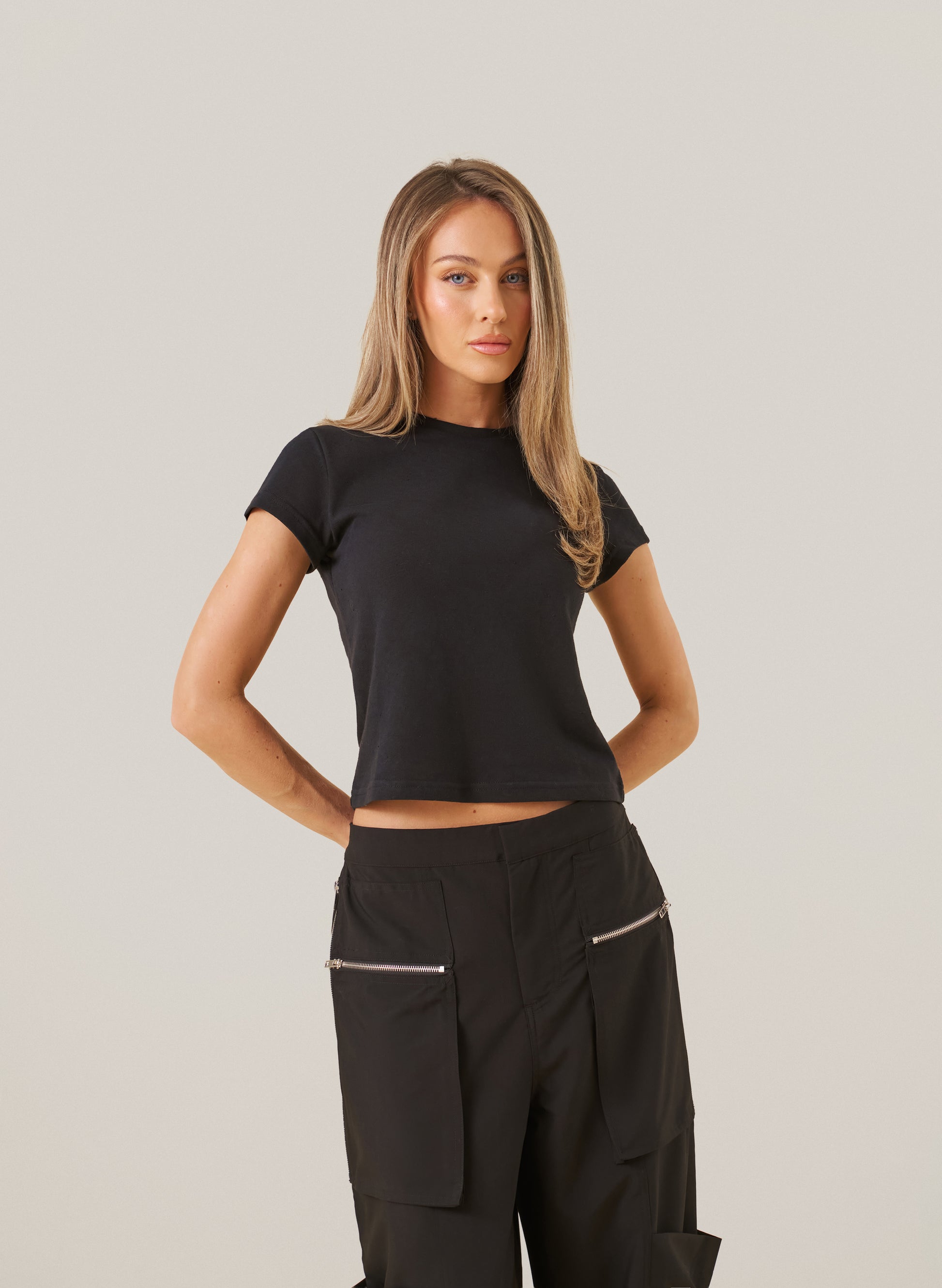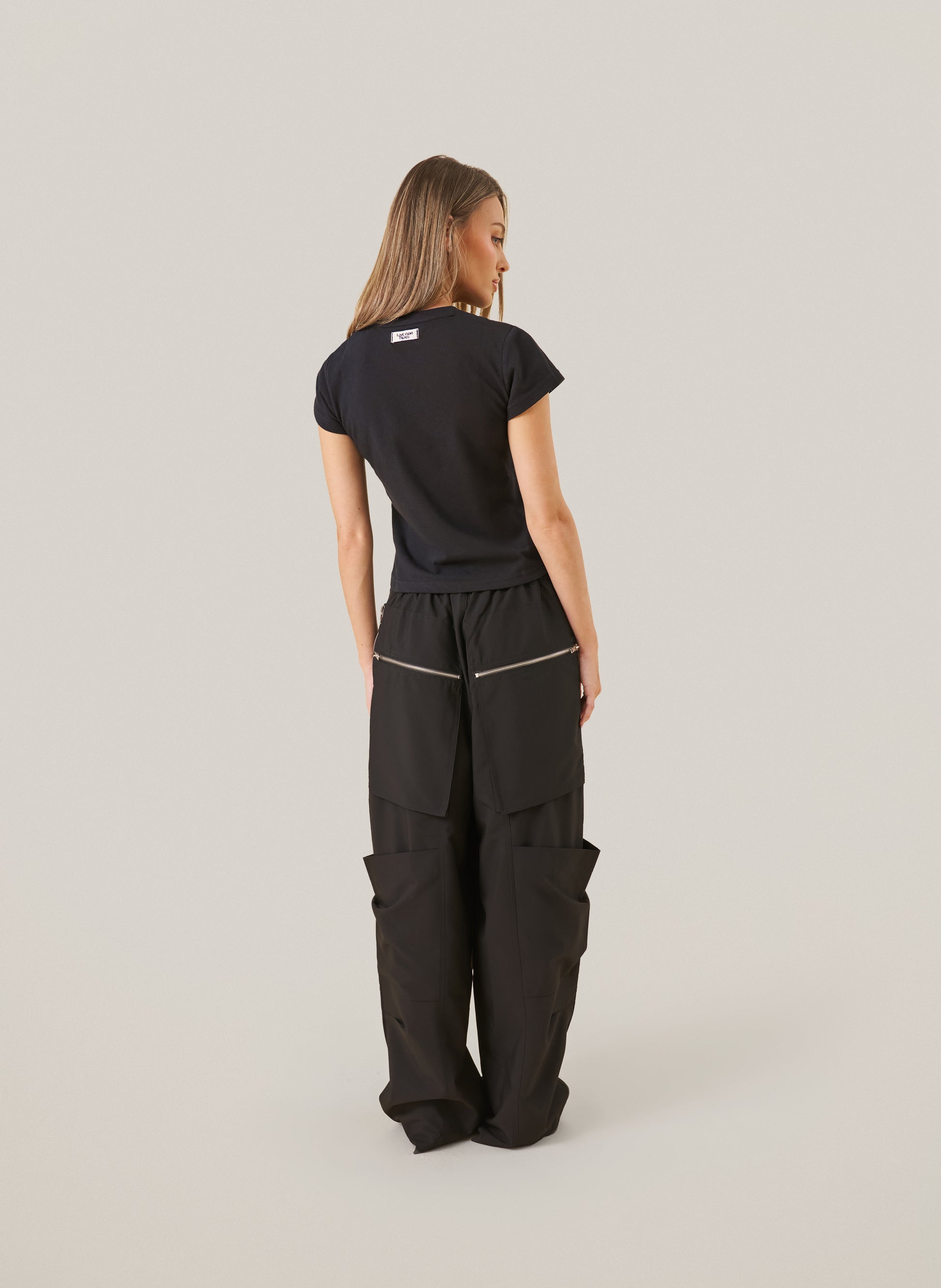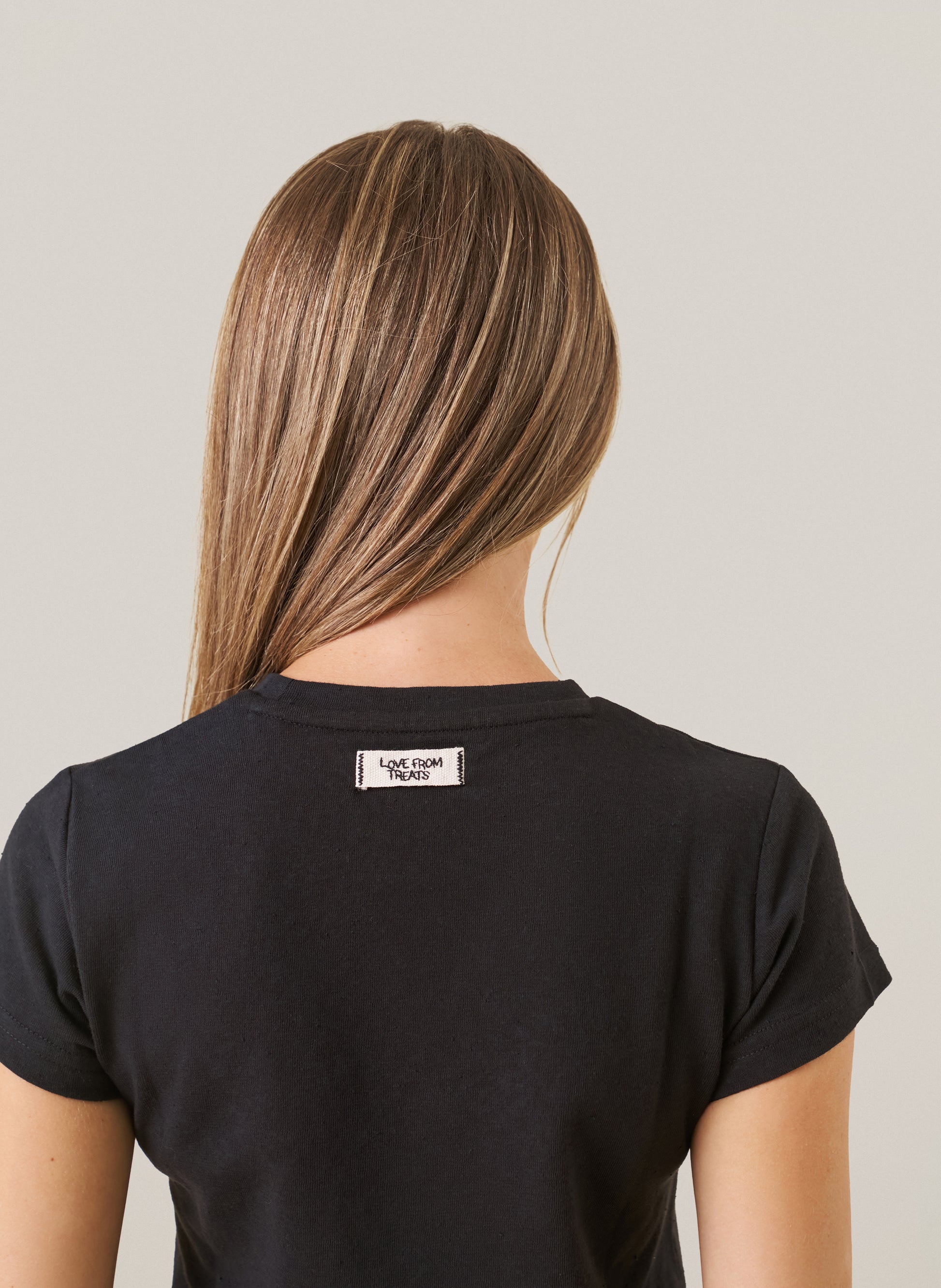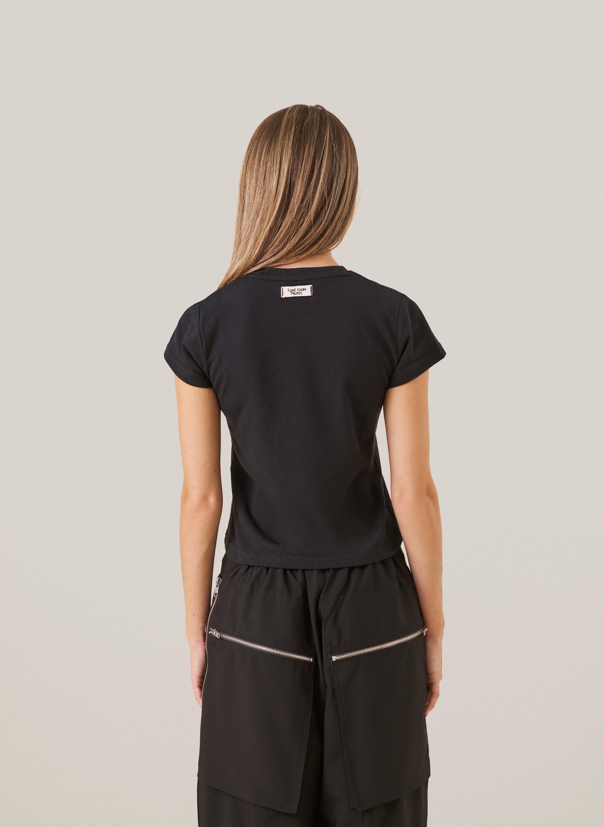 The Love From Treats Baby Tee in black is a throw-on-with-anything staple. Finished with our signature “Love From Treats” logo patch, it’s the kind of top you’ll wear on rotation with joggers, denim, or layered under oversized knits.