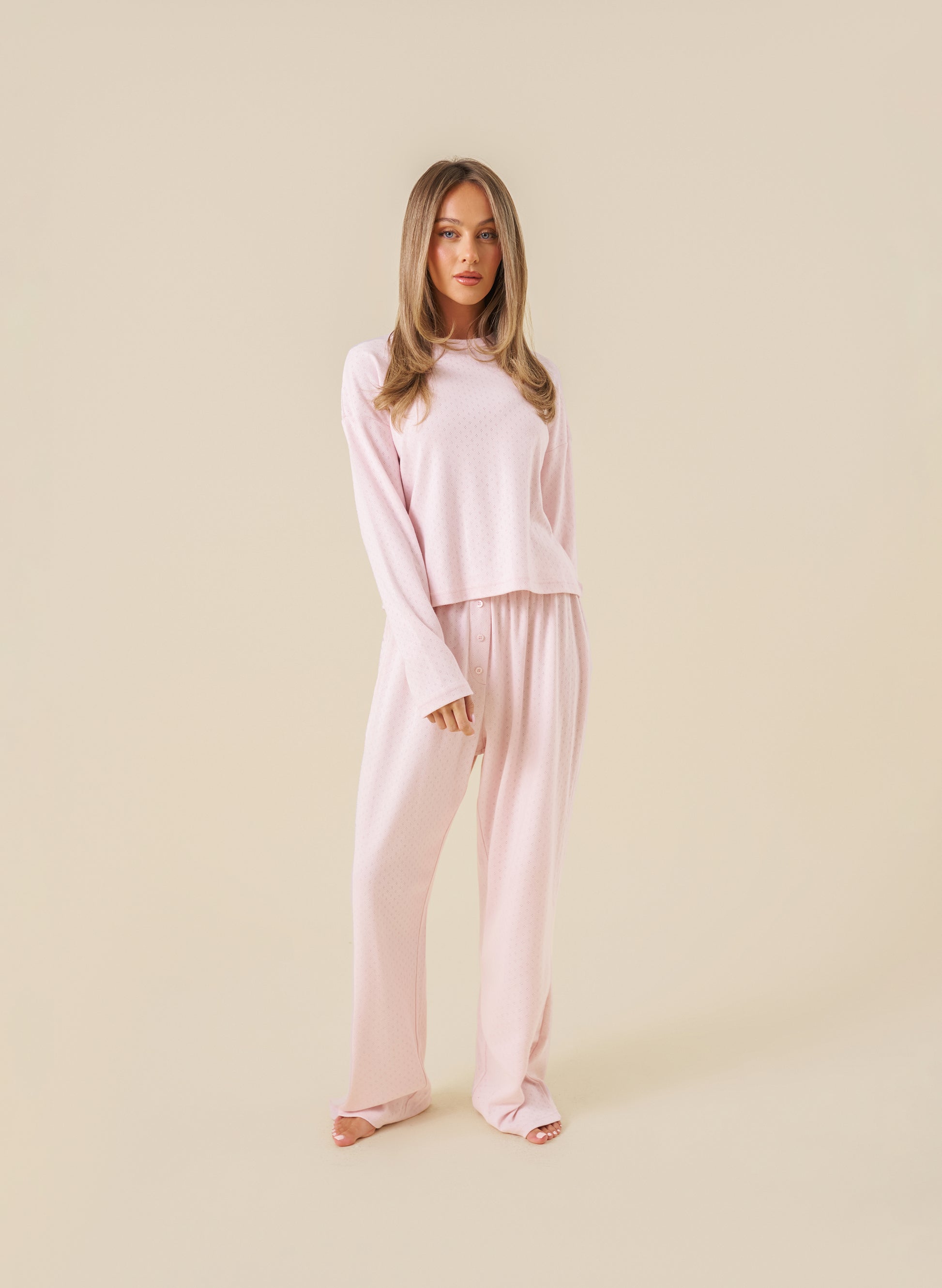 Our new and improved Pointelle Pyjama Set is crafted from lightweight 100% cotton with an updated Pointelle texture and a relaxed, boxier fit, blurring the lines between pyjamas and loungewear. Finished with our signature branding on the back, and pre-shrunk so it keeps its shape wash after wash.