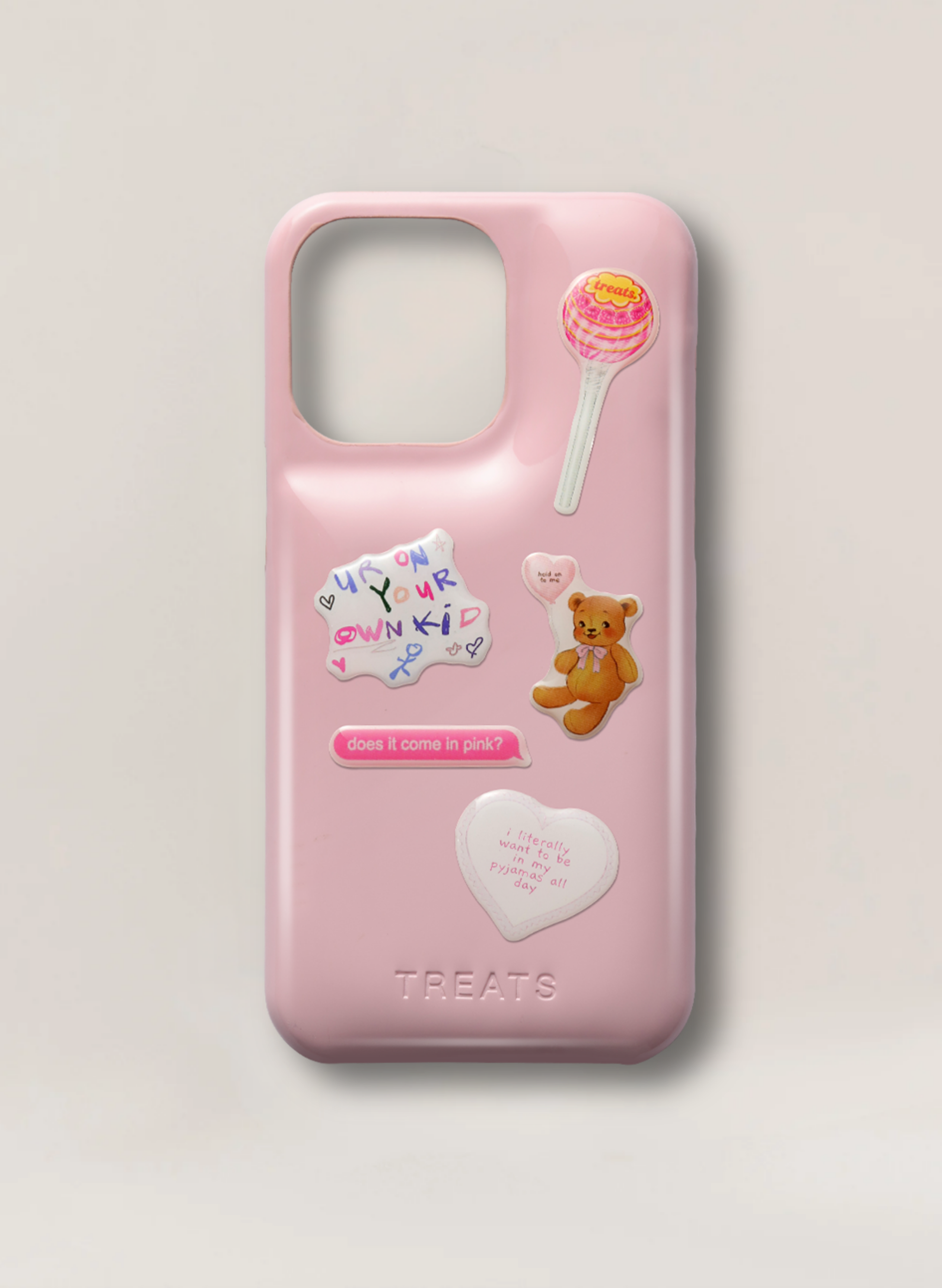 Soft, squishy, and Treats branded. The Pillow Case is sleek, padded, and designed with a cushioned feel that’s as comfy as it looks. It comes with a matching sticker set so you can customise it your way, playful, personal, and built for everyday protection. Style it with our loungewear sets for a head-to-toe Treats look.