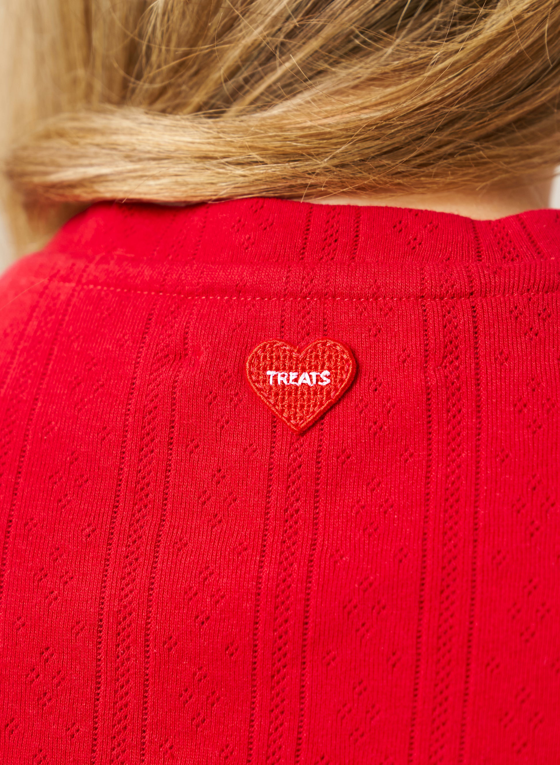 The Pointelle Pyjamas Short Set is designed for cosy nights and effortless comfort. Made from a soft, breathable pointelle fabric in red, it features a relaxed short-sleeve top and matching shorts with subtle Treats Heart detailing.